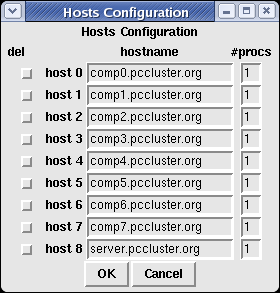 このようにするためには、まず、サーバホスト名を登録した後に、他の計算ホスト名を登録する必要があります。