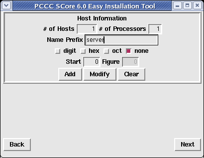 例えば、4台の計算ホストの接尾句が005, 006, 007, 008の場合には、Start欄には5、Figure欄には3を入れます。